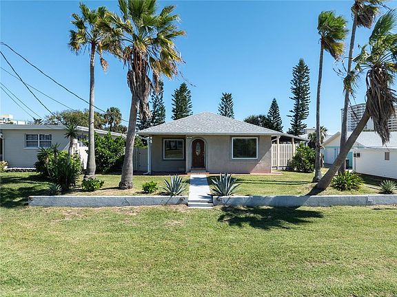 Between River & Ocean — Coastal Gem in Daytona Beach Perfectly positioned between the Intracoastal Waterway (“Halifax River”) and the Atlantic Ocean, this beautifully maintained property offers the best of Florida coastal living — just a 5-minute walk to the beach. The main residence features two private bedroom suites and a flex room ideal as a study or third bedroom. The layout provides comfort, privacy, and an easy flow throughout. Bright open concept living area with large windows (hurricane resistant), and spacious kitchen featuring natural stone countertops and modern stainless-steel appliances. Elegant tile flooring runs throughout, creating clean and airy feel. Situated on a fully fenced (~5’) lot, the property is bordered on three sides by city easements and a quiet dead-end street, creating a private, open setting. Three-quarters of the lot is paved and gated, offering protected parking with access through two separate gates. At the rear, a detached one-car garage and carport with an attached workshop/office/hobby studio includes its own bathroom, storage room, kitchenette, and lounge area with double French doors opening to the parking area. New hydro insulation and premium vinyl shingles installed in 2025 make it a bright, comfortable, and inspiring space to work or relax. The home also features independent A/C control throughout — ensuring year-round comfort in every room. A rare blend of coastal charm, practicality, and investment appeal — perfect for full-time living, vacationing, or rental income potential.AC and Water heater installed in 2020.