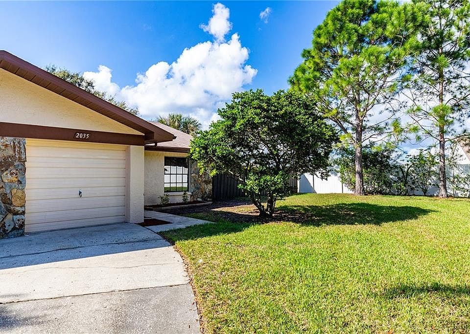 Wow! Newly renovated end unit Villa in the quaint and quiet neighborhood of Bayside Villas. This unit is a 2 bd 1.5 ba with a 1 car garage the home is approximately 1100 sq ft. Perfectly located in the cul de sac with an extra large fenced in yard; including a 250 sq ft shed for extra storage. Granite counter tops and stainless steel appliances are featured in the kitchen and bathrooms. There is also a large screened in lanai to enjoy the beautiful backyard. Monthly HOA is only 90 dollars a month which includes lawn service, and a beautiful in ground heated pool. Also located 2 blocks away is Sheffield Park which includes basketball, tennis, playground and other amenities.