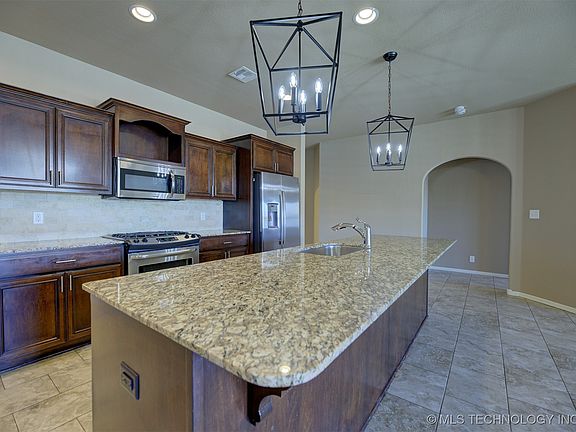 Welcome to your move-in ready home!! The home features a nice open kitchen with tons of cabinets and counter space. Huge granite island. Custom shelf genie pull-out drawers, open living to kitchen and breakfast nook. 3 bedrooms down, upstairs 4th bedroom could be game room w/ full bath and closet. Office and dining off the entry. Privacy fence, professionally landscaped w/ sprinkler system. 3 car garage, neighborhood amenities include a pool, two parks, splash pads, and stocked ponds. Located in a highly sought-after Bixby West Elementary and Intermediate School. Plus, it is a short distance to highways, restaurants, and the new outlet mall.