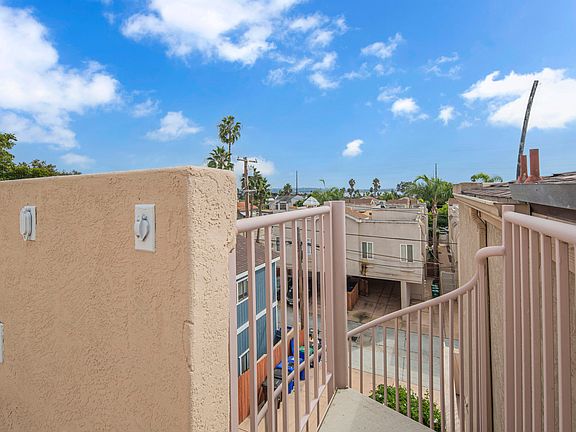 Ready for move-in now! Beautifully appointed 1300 Sf townhouse in Pacific Beach. 2 bedroom, 2.5 bathroom, roofdeck with views of the bay. Walking distance to everything with quiet neighbors! Hardwood floors on stairs and main level, custom lighting, ceiling fans on all floors, air-conditioning in 3rd floor bedroom. Open layout on main floor with lots of natural lighting, gas fireplace, and vaulted ceilings. Open kitchen with granite countertops, LG appliances. Spiral staircase from 2nd floor deck to large private rooftop deck with custom tiling. Enjoy views of Mission Bay and the Sea World Fireworks. Wall-length California closets in both bedrooms. Direct access to one-car garage with professionally installed storage racks. Assigned parking in alley with plenty of on-street parking. Washer/dryer on first floor. Custom blinds on all windows. Owner pays for water and trash collection. Tenant responsible for power and cable. First month and safety deposit due at signing. Open to 1 to 3 year lease.
