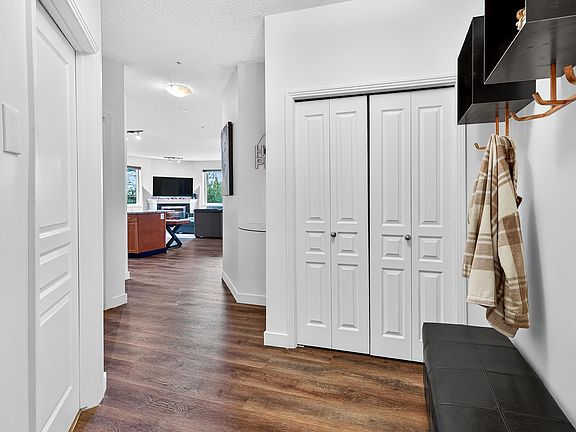 Welcome to the Californian Parkland, a warm and welcoming community you’ll be proud to call home. This bright and spacious corner unit offers an abundance of natural light with many windows and 9-foot ceilings. Lovingly maintained by its original owners, this two-bedroom, two-bath home combines modern comfort with thoughtful details throughout. Enjoy brand-new vinyl plank flooring, a cozy fireplace for relaxing evenings, heated floors throughout, and an open-concept layout ideal for hosting family or friends. The kitchen features granite countertops, stainless steel appliances, and a large island that flows seamlessly into the dining and living areas. The primary suite is a peaceful retreat with a walk-in closet and private three-piece ensuite. Step outside to a covered balcony perfect for morning coffee or evening conversations. The building offers underground parking with storage, a fitness room, guest suite, and a community lounge with regular social events and activities.