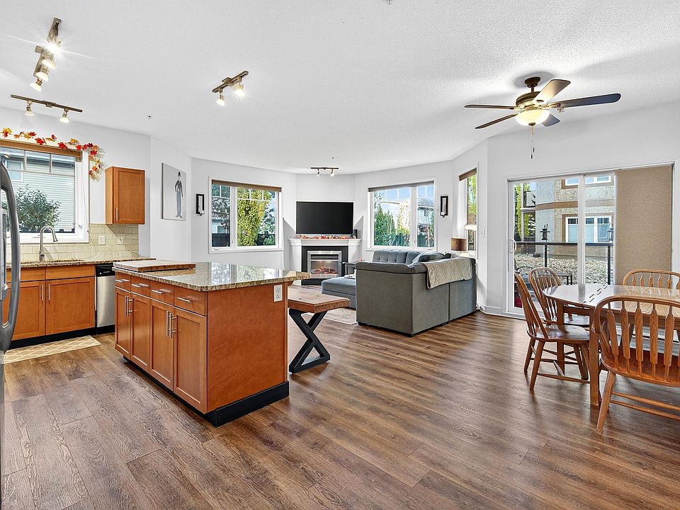 Corner unitAbundance of natural lightBrand-new vinyl plank flooringCozy fireplaceHeated floorsOpen-concept layoutGranite countertops