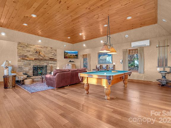 Priced to sell and recently refreshed, this luxurious mountain retreat offers 5,416 square feet of elevated living at 4,800 feet—ideally situated along the Sugar Mountain Ski Resort shuttle route and only minutes from dining, grocery stores, and year-round High Country attractions. Positioned on over 2 acres across four parcels, this fully furnished (with few exceptions) home blends modern updates with timeless mountain style. Step inside to a grand open-concept living area featuring vaulted ceilings, hardwood floors, and a cozy gas fireplace—ready for gathering after a day on the slopes. The renovated gourmet kitchen is designed for hosting, complete with leathered granite countertops, gas range, wine refrigerator, walk-in pantry, coffee bar, and pop-up island outlet for seamless entertaining. This exceptional layout features two primary suites—one on the main level and one upstairs—each offering elegant spa-style bathrooms with heated floors, glass-enclosed showers, and deep soaking tubs with mountain views. A versatile guest bedroom, main-level office with pullout bed, and generous bath count ensure comfort for family and visitors alike. Embrace the luxury of true indoor–outdoor living: multiple covered and uncovered decks, including a deck off the main-level primary suite, frame the surrounding beauty. You'll find a spacious game room on the main level hidden away from the primary living space ready to entertain with a pool table, wet bar, and wood-burning fireplace. Downstairs, a dedicated theater room, sauna, and hot tub provide endless entertainment and relaxation. A fenced yard adds convenience for pets. Outdoor enthusiasts - this home sits just around the corner from Sugar Mountain Ski Resort—with hiking, tubing, golf, and mountain biking—and offers a heated storage/changing room in the oversized garage for skis and gear. With its combination of location, upgrades, space, and lifestyle amenities, this is one of the best-priced luxury opportunities near Sugar Mountain. Experience refined mountain living—move-in ready and designed to elevate every season.