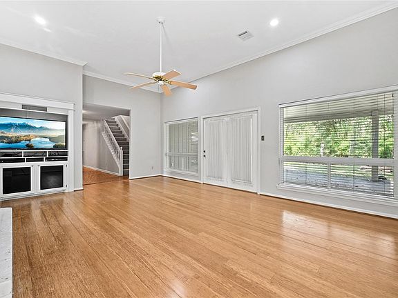 BEAUTIFUL CUSTOM HOME*DOUBLE PANE windows-no noise inside! NEW ROOF '25* FRESH  PAINT* NEW "Upgraded" Carpeting.. Crown Molding-HIGH CEILING in Gorgeous Living w/BAMBOO FLOORING-Gas Log Fireplace-Overlooks Large COVERED FLAGSTONE PORCH...Primary Bedroom Down-TV STAYS...Has a "Second" Flagstone Patio off Bedroom*FABULOUS UPDATED Primary Bath w/JACUZZI Tub*2 A/C's, 2 Heaters*NEW 199,000 BTU Tankless Hot Water heater '25*Island Kitchen w/GAS STOVETOP...New Oven...Microwave.. Instant Hot Water Dispenser for Kitchen sink...Under Counter lighting.. GRANITE Countertops* Newer Tile flooring.. UPstairs-3 Bedrooms & full Bath w/ONYX Countertop & ONYX tub surround*Small Office area Upstairs can be a GAMEROOM! Fully Landscaped w/Automatic SPRINKLER SYSTEM...Two Flagstone Patios*CONCRETE PAD behind the Garage (2nd Garage Door)-great for basketball or boat/trailer extension*No back neighbors* PRIVATE back yard-close to the dead end of the street-(not a culdesac)*IT"S QUIET INSIDE!!!