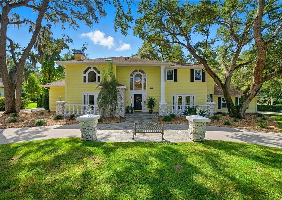 Tucked away in a quiet "hidden" retreat neighborhood, high and dry, non evacuation zone and conveniently central to all of Dunedin's amenities, this elegant Two-Story Estate with Pool and Expansive Grounds is truly special. Welcome to Indian Creek Court. This stately 4-bedroom + den and bonus room, 3.5-bath residence with a 3 car side load garage is perfectly situated on a spacious, beautifully landscaped lot in one of Dunedin’s most desirable neighborhoods. Classic charm meets modern comfort in this impressive two-story home, offering ample room for both relaxing and entertaining. Inside, you’ll find formal living and dining rooms, ideal for gatherings and special occasions, as well as a warm, wood-paneled office or den—perfect for remote work or a quiet retreat. The kitchen and family areas flow seamlessly to the outdoor living spaces, creating a perfect setting for Florida living at its finest. Upstairs features three additional bedrooms, two baths and a bonus room that can be used for a second family room, media room, gym, or whatever you dream up. Step outside to your private oasis featuring a sparkling pool, expansive decking, gazebo, and plenty of open yard space for recreation or gardening. The meticulously maintained grounds provide a tranquil backdrop for morning coffee, weekend entertaining, or sunset relaxation. With its blend of timeless architecture, generous living spaces, and a resort-style backyard, and multiple recent upgrades including impact windows and doors and a whole house generator, this exceptional Dunedin home offers a rare opportunity to enjoy luxury, comfort, and privacy just minutes from the charming and bustling shops, restaurants, and waterfront parks of downtown Dunedin.