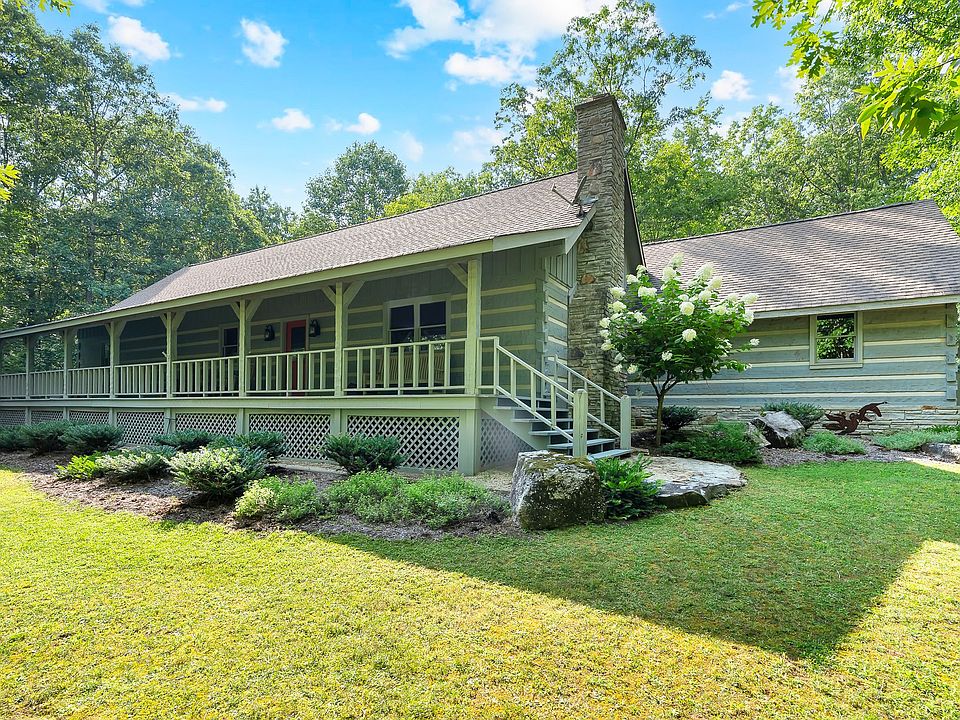 This charming 3-bedroom, 3-bath log cabin sits on a 5 acre beautifully maintained wooded lot in the coveted Clifftops neighborhood. Featuring gorgeous hardwood floors, abundant storage, and a dedicated office with built ins, this home blends rustic character with modern comfort.