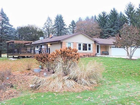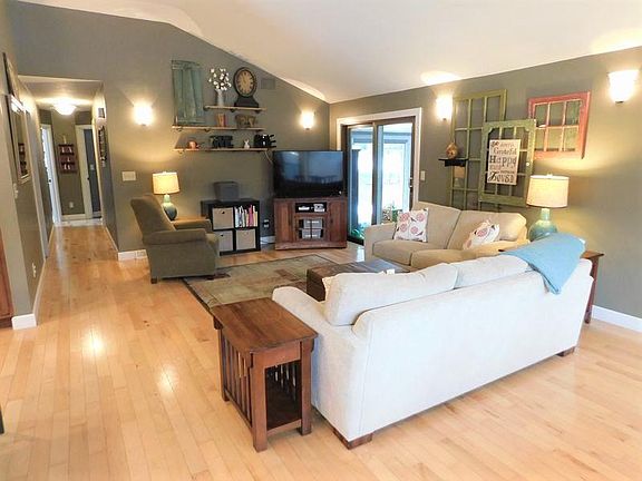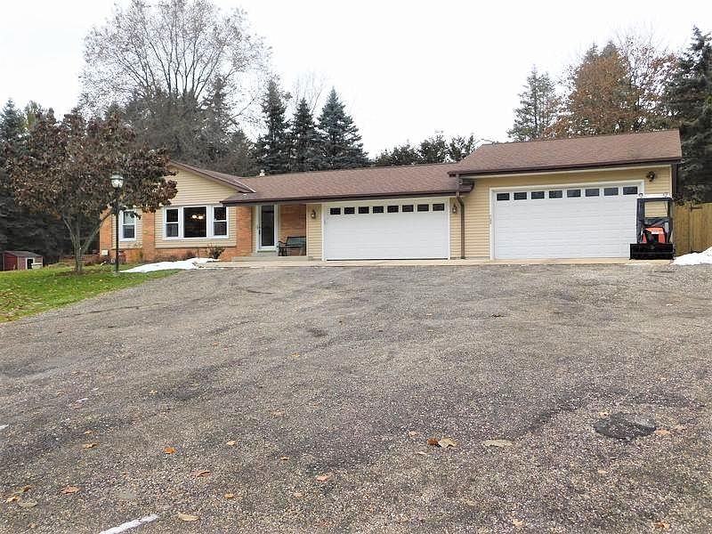 This open-concept ranch has been meticulously updated since 2010. Enter into spacious foyer which opens to Great Room, dining space & kitchen with granite counters, walk-in pantry and appliances included. Great room leads to three-season area with free-standing fireplace. Kitchen leads to charming deck with pergola. Master bath has spa-like retreat with jet tub, Travertine shower stall and custom vanity. Main floor laundry. Lower level has rec room, BR 4 w/ egress, game room area and bonus room plus another amazing full bath with huge walk-in shower stall. The country yard is charming with apple trees, grapes vines & beautiful perennials for an idyllic stroll! Did I mention the 2 car attached garage and the bonus 28 x 21 workshop with 220V & exhaust fan plus bonus sheds? Better hurry!