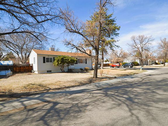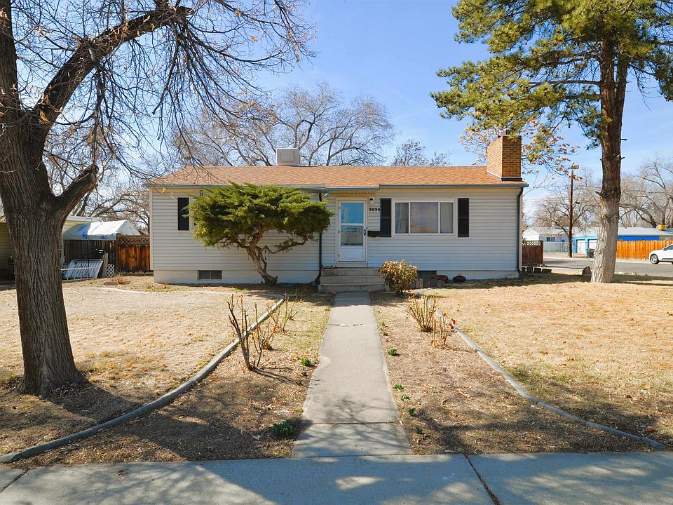 This home has so many options to meet your needs! Currently a 4 bedroom (2 are non-conforming), 2 bathroom, Ranch style home with basement and 2 car Carport. Nice corner lot with Alleyway behind you. Only sharing a fence with one neighbor! Park like backyard with RV Gate, 3 sheds, fire pit, and open patio. Main level offers a Living Room with Wood Log Fireplace, Kitchen with Desk, all Kitchen Appliances stay, and a custom built-in Dining Table, two large Bedrooms, built-in storage, and a nicely sized full Bathroom. The Basement offers 2 non-conforming Bedrooms (needs egress windows to be a true Bedroom) with closets, a HUGE Family Room with additional Wood Log Fireplace, 3/4 bathroom, Laundry area, storage under the stairs, and a nicely sized storage closet. There is a back door at the stair case which would allow for a separate entrance to the downstairs and a lock off from the main level. Great for multi-generational living or college students. Newer roof, updated Evaporate Cooler, and Hardwood flooring under the upstairs carpet. Get inside today!