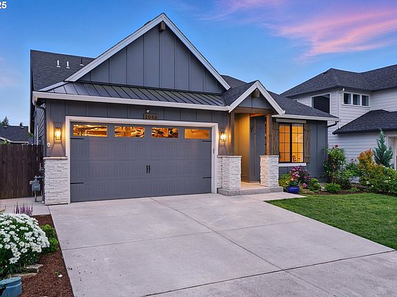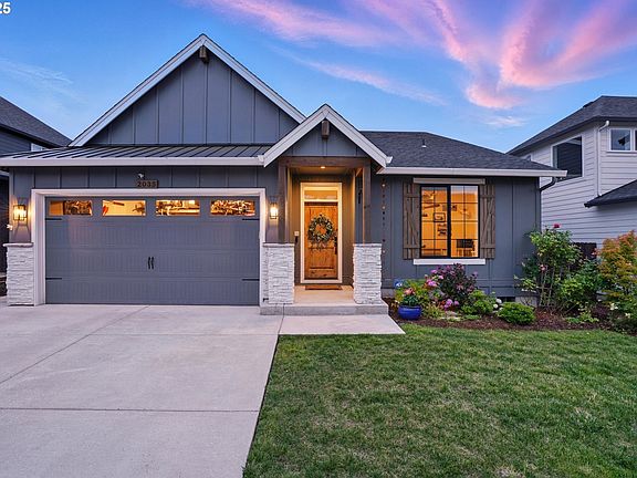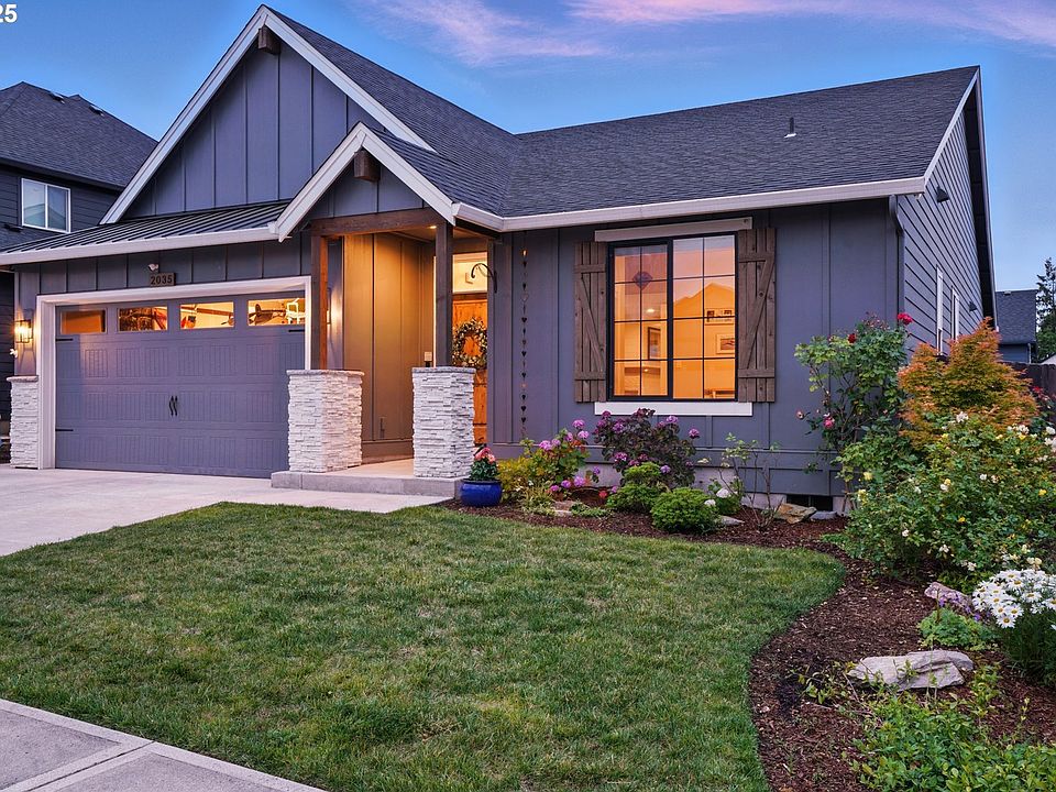 This single-level home in Union Ridge Ranch neighborhood offers high-end comfort, low-maintenance living, and thoughtful upgrades throughout. Built in 2020 by Generation Homes NW, this 1,926 sqft, 4-bedroom, 2-bath home features an open-concept layout with a grand 10-ft entryway. One bedroom functions well as a home office. Designer finishes include Italian porcelain tile in both bathrooms and a floor-to-ceiling tiled walk-in shower in the en-suite. The kitchen is equipped with gas appliances, quartz countertops, and a large center island, ideal for hosting. Smart home features include a Nest thermostat, remote-controlled dimmers, timers on fans, and an app-controlled garage door. Top-down/bottom-up window shades provide light control and privacy. Outside, enjoy a 14x15 Trex deck with pergola, custom stamped concrete patio surrounding a gas fireplace, raised garden beds on the side of the home with a drip system, landscape lighting, and a storage shed. The fully fenced yard is beautifully landscaped, with HOA-maintained front lawn care included. A 2-car garage adds convenience. Located in a quiet, well-established neighborhood connected to the Ridgefield trail system, with easy access to nature and town. Just 1 mile of a hike down the hill to Abrams Park using the Ridgefield walking trail. Minutes of a drive to Ridgefield National Wildlife Refuge, Downtown Ridgefield, and the public boat launch. Located in the Ridgefield School District which is part of one of the top-rated schools of Clark County, with close access to I-5 for commuting. Ideal for those seeking single-level living with modern amenities, convenient access, and a peaceful setting. Schedule a tour today to see this beautiful home.