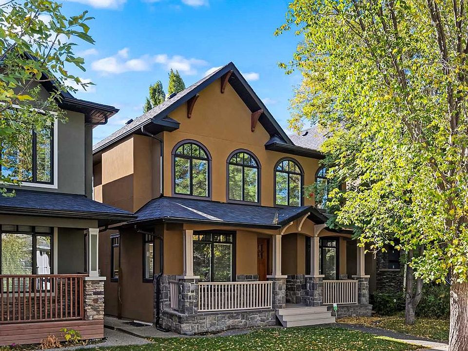 OPEN HOUSE SUNDAY OCTOBER 5th 2-4:30**PLEASE VIEW THE DRONE VIDEO** NOTE THE LARGER LOT (33’x125’). TRIPLE DETACHED GARAGE. Beautifully spacious and freshly painted family home with 3285 sq. ft. of living space and over $90,000.00 in upgrades! Located on a quiet, wide tree-lined street in the heart of West Hillhurst! Tons of natural light through the large windows and glass block features. Gleaming Brazilian Cherry floors on the main floor. The large gourmet kitchen elegantly blends the gorgeous Cherry cabinetry with new stainless-steel appliances. Chefs will love the timeless granite counters and five burner gas stove. Large 6’9” granite island with eating bar and built-in wine storage. The Den makes a great home office. The large front formal dining room is perfect for family and entertaining. The spacious and inviting rear view living room with elegant black slate gas fireplace features large south windows and French doors opening onto the south facing wood deck. Wide well-lit stairs to an exceptionally well-designed upper level. An expansive primary bedroom retreat with Cherry wood built-ins, three-way gas fireplace, vaulted ceiling and two large walk-in closets. A dream spa-inspired five-piece ensuite bathroom with separate granite vanities, elegant deep soaker tub and oversize tile shower. Two additional upper bedrooms feature vaulted ceilings, and each has its own four-piece bathroom! Convenient upper laundry includes the new upgraded washer and dryer. Spacious, open design fully developed lower-level features five egress windows and walnut engineered hardwood floors. The expansive family/recreation area features an elegant corner gas fireplace. Large fourth bedroom and spacious three-piece bathroom with egress window and oversize walk-in shower make this perfect for guests or a nanny. A sought-after triple detached insulated, drywalled and heated garage. A wonderful south private backyard with 25’ freshly painted wood deck and paver stone patio with beautiful perennial garden. This location is so well connected that commuting to work, school and daily errands is easy. SAIT, U of C, Foothills Hospital and the inner core are just 10 minutes away. Outdoor enthusiasts will love this fabulous location nestled only two blocks from the banks of the Bow River Pathways. This premier location is the perfect place to call home.