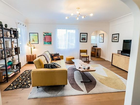 **1-6 month lease only. Not a long term rental.** Furnished rental. Available Now. Stay connected on the go with high-speed internet. Near trendy cafes, restaurants, and local lunch and dinner spots like Palm Grove Social, Tartine, Cento, Mizlala and Alta Adams. Five minutes to Whole Foods and other great grocery stores such as Ralph's, Sprouts and Trader Joe's. Living Room Roku TV with sound bar. Kitchen Dining table seats four Dishwasher Refrigerator Toaster Microwave Oven French Press Kettle Blender Silverware Pots Cooking Utensils Desk area Bedroom 1 Queen bed Luxury linens and duvet Side Table Closet Space Bedroom 2 King bed Luxury linens and duvet Side Table Closet Space En suite bathroom Bathroom Shampoo Conditioner Body wash Towels Laundry Room Washer Dryer Parking Garage parking only for standard sized vehicles. It will not fit an SUV. * Guests are not allowed to block driveway.* Overnight street parking available. Please note: We start off guests with all essentials such as toilet paper, paper towels, soap and etc. However, after they are depleted, guests are responsible to replenish. Mid term furnished rental. For 1-6 month lease only. Owner is responsible for all utilities including Wifi and electric. Monthly cleaning included.
