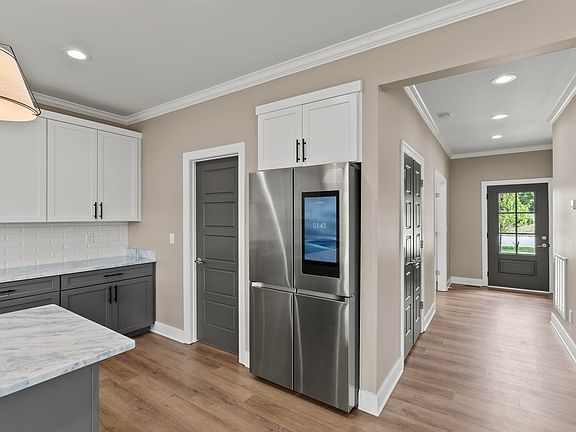 Gorgeous two year old home in Halfhill Estates. Entry foyer opens to the flex room (office, formal dining, etc) with glass French doors. Beautiful kitchen with Waypoint Cabinets with Stormy Night countertops and white subway tile backsplash. Includes a gas range and Samsung Family Hub refrigerator. LVP throughout first floor and upstairs hallway and laundry. Vaulted primary bedroom with private bathroom featuring a mudset tile shower (with shower door), double sink vanity and two walk-in closets. One closet has direct access to the laundry room. Tiled bath walls in the hall bathroom. Covered back porch. Blinds and screens on windows.