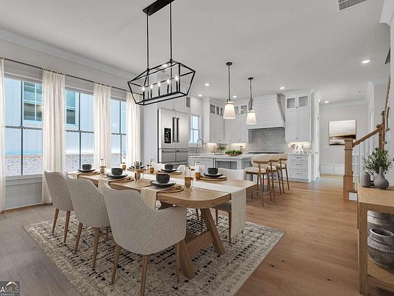 Perfect for the on-the-go homeowner, this beautiful residence in the Village section of Crossroads offers a true lock-and-leave lifestyle. With HOA-maintained grounds plus sewer included in the monthly fees, you can enjoy more time living and less time on upkeep. The main level features a primary suite, private office and laundry room, making this an ideal layout for comfortable one-level living. Step inside to discover designer touches throughout, including cedar-wrapped beams in both the family room and primary suite. The chef's kitchen is a showstopper with custom cabinetry to the ceiling, quartz countertops, a farmhouse sink, and a professional-grade 48" Thermador gas range-featuring six high-output burners, a griddle, and double ovens for flawless cooking and entertaining. A walk-in pantry keeps everything organized and within reach. The family room invites relaxation with a brick-surround fireplace, cedar mantle, and tongue-and-groove shiplap walls. Just off the kitchen, a covered deck overlooks the community greenspace, creating the perfect setting for grilling or unwinding outdoors. Upstairs, a versatile flex space serves as an ideal guest retreat or media room. Bedroom three offers a private en suite, while bedrooms two and four share a convenient Jack and Jill bath. Ample attic storage provides additional functionality. Blending style, comfort, and ease of living, this home delivers a refined retreat in a charming community setting. Enjoy walkable access to dining, shopping and services, plus the benefit of award-winning schools-all in one of Milton's most desirable locations.