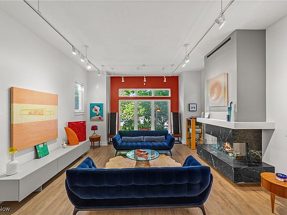 A beautiful opportunity to own this artistically curated Colonial in the heart of Tremont. This spacious three bedroom 2.5 bath home features over 2500 sq ft of modern interior living space with a massive outdoor courtyard-style backyard that is perfect for large gatherings in the warmer months. This home has undergone numerous & recent high-end renovations since it’s been built, including a custom gourmet kitchen with REHAU cabinets, dekton countertops, high-end appliances, and a large custom pantry. Stunning hardwood floors are featured throughout this home, including the spacious living room & dining room areas. A custom designed, 3-sided glass soap stone fireplace sets the stage in the living room, which also features high ceilings & lots of natural light. The dining area is perfect for large dinner parties & features a beautiful modern crystal chandelier. A stylish blue powder room completes the first level. Upstairs, the primary suite is spacious & features more stunning hardwood flooring, a custom stone fireplace w/remote control, vaulted ceilings, a walk-in closet, and an amazing primary bath with large glass walk-in shower, soaking tub, & skylight. Another spacious bedroom can be found down the gallery hall, which includes hardwood floors & direct access to the other updated full bath. A convenient laundry room completes this level. The third floor is an ideal guest room space, which includes vaulted ceilings, a walk-in closet, and has direct access to a lovely terrace with views of the city skyline. The lower level is currently being used as an art studio & storage space, but this level could become additional living space with your touches! An oversized 2-car detached garage & lush courtyard-style backyard provides a secluded ambiance tucked away in the city. This property sits just feet away from the Towpath & all of the Tremont hot spots, as well as close proximity to all of the major highways. Do not miss this wonderful chance to own this special gem!