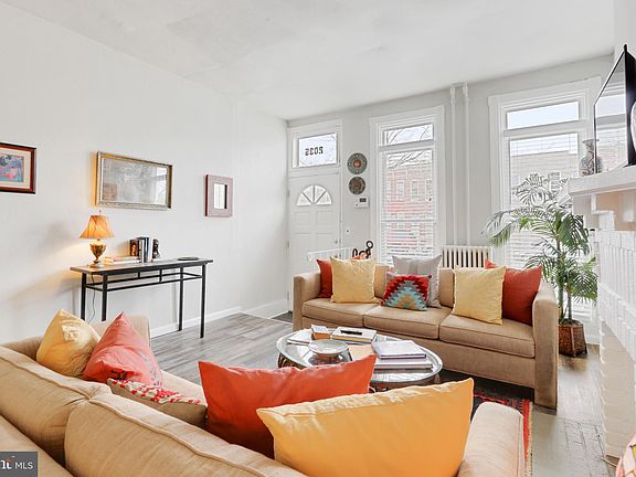 Step into this beautifully preserved traditional Baltimore row home, blending timeless Old World character with today's modern conveniences. The Formal living room welcomes you with decorative brick fireplace and mantle, creating a warm and inviting atmosphere. A spacious formal dining room easily accommodates six or more, perfect for entertaining. The updated white kitchen features ample cabinetry, custom built-in shelving, and a convenient stacked washer and dryer. Just off the kitchen,enjoy a cozy breakfast nook with direct access to the fully fenced rear yard which is ideal for outdoor gatherings and gardening. Upstairs, you'll find a versatile front bedroom (currently used as a family room), a hall linen closet and a light filled primary bedroom with three large windows and a generous walk-in closet. The crisp white bathroom has been updated with custom built-in shelving for both storage and display. The unfinished lower level houses a newer gas furnace and water heater, offering great utility space. Very conveniently located close to hospitals, transportation, interstate and downtown. Home inspections are welcome for informational purposes only. Basement has experienced water intrusion during heavy rain. Seller is participating in 1031 Tax deferred exchange. This home offers historic charm, modern updates and a fantastic opportunity to make it your own.