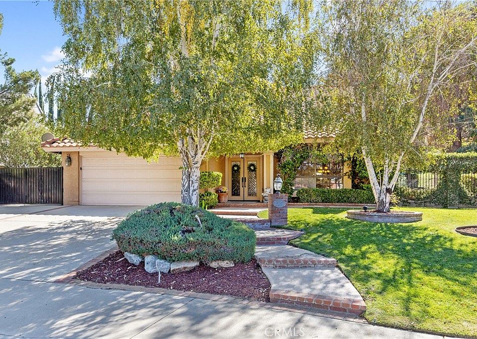 One of a kind private lot in Santa Clarita at almost 19,000 sq. ft. This entertainers dream home will knock your socks off with room for a huge gathering featuring built-in BBQ, water features, multiple patio coverings, fire pit with seating, and spa. House is awesome too, but I digress, just picture yourself relaxing in the hammock while looking at all the greenery and trees. The 2240 sq. ft. home features 4 beds and 3 baths, one of each is downstairs. The family room is large with fireplace that opens up to informal dining and a door leading to that amazing BBQ area, did I mention the yard? Kitchen has warm white cabinets with neutral granite, pull out shelving and a bay window overlooking the park(i.e. backyard). On the other side, the kitchen is open to more formal dining with another fireplace and a bar area for servicing your guests outside. Upstairs has a large primary suite with sitting area. 2 more bedrooms with a shared bath round out the upstairs. Has potential for RV/toy parking behind the double gates. No HOA, No Mello Roos, and award winning school districts!