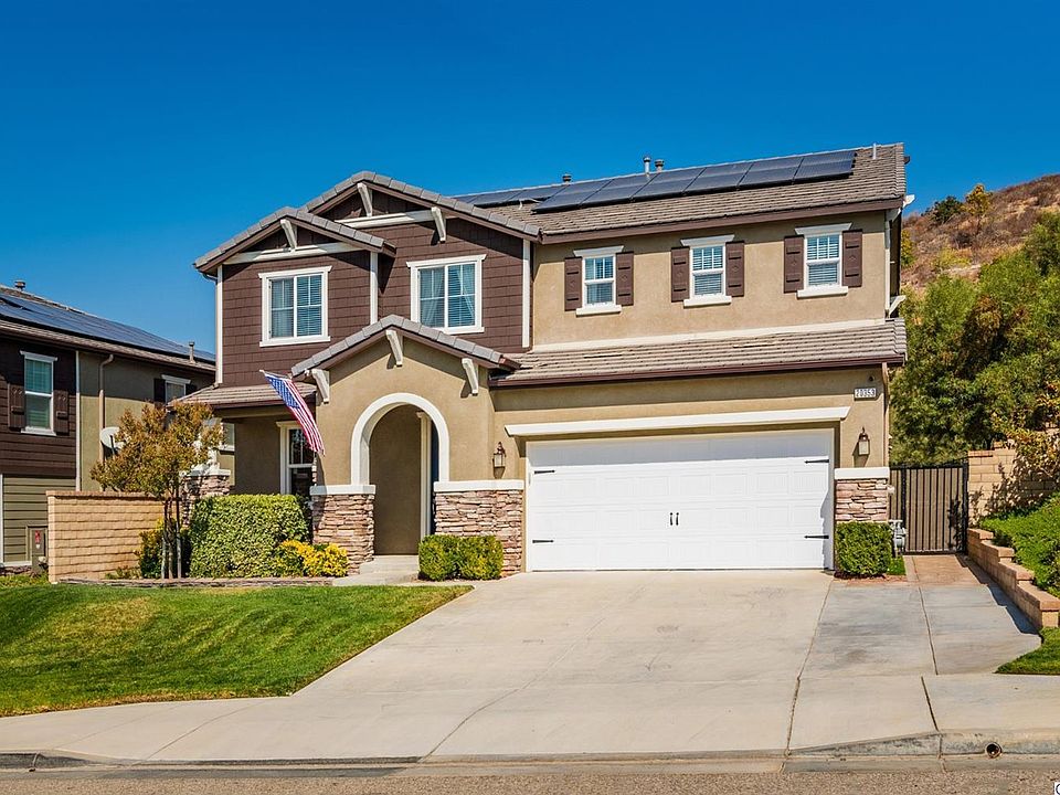 Welcome to this immaculate pool home located on a quiet street at the peak of Plum Canyon! This beautiful energy efficient home is well maintained & features many upgrades. This 4 bedroom, 3 bath home boasts 2,900 sqft of impeccable living space w/a large open floor plan! Step into the master suite w/vaulted ceilings, large walk-in closet & a master bath featuring a glass shower, a separate soaking tub and dual sinks! An amazing upstairs loft that can be any room you want it to be! Downstairs offers a living room w/built in desks, dining area and family room w/fireplace. Spacious gourmet kitchen that features an island with a breakfast bar & granite counter tops, travertine backsplash, a walk in pantry & built-in appliances. This home also has a separate laundry room & 2 car garage that has epoxy flooring making clean up easy & plenty of storage space w/a custom work bench. Solar panels, dual pane windows, a radiant barrier on the roof & a dual zoned ac/heater system all make this home perfect for anyone looking to cut costs & save energy! Relax & enjoy the salt water pebble tec pool & spa surrounded w/an abundance of greenery & lots of privacy! Large custom patio cover w/outdoor ceiling fans & fire pit. Perfect for entertaining & spending time outdoors!
