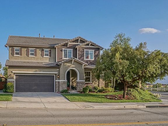 FIRST TIME ON MARKET: Stunning KB home built in 2007 now available by original owners. Entertainers backyard is simply delicious! Watch sweet summer sunrises and sunsets from the Master Suite Balcony. Enjoy long days and cool evenings in your new home, swimming in the pool and spa. Share the outdoor BBQ with family and friends while you relax, unwind and let the kids play in the pool or children's playhouse on the lower level. Your new home features just over 1/3 acre (14,545 sf lot), one of the largest lots you'll find in Santa Clarita with all the comforts city living provides. Enough room in the back to also start your own organic garden or composting. Inside you will find a generous floor plan of 4 bedrooms + loft, 3 bathrooms in 2,900 square feet of living space. Large family style kitchen boasts granite counter tops, lots of cabinet space and a separate pantry area; a center island with secondary sink; stainless steel wine fridge, dishwasher, stove top, double-oven, plus microwave; and an oversized double-door, built-in refrigerator. Can use the island as a breakfast nook or you may add optional informal table ... yes, there's that much space! In addition, you also have two living spaces in which one can be your formal dining for holiday gatherings. Living space off the kitchen features stone-covered fireplace for cozy cool evenings. HOA $95. See supplements for floor pan and Mello Roos information.