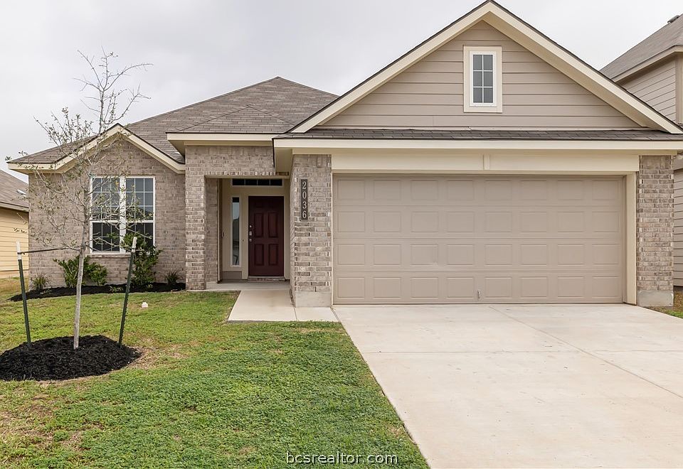 Don't miss this pristine 3 bedroom, 2 bathroom home in the new Pleasant Hill Subdivision! The open-concept, split bedroom floor plan offers a spacious living room, a separate dining room, granite countertops, a large kitchen island with eating bar, vinyl plank flooring in common areas, security system, entertaining patio off the living area, plenty of natural light, and more. Enjoy a large master suite with a separate tub and shower, double vanities, and large walk-in closet. The secondary two bedrooms share a hallway and bathroom with a large hall closet. Conveniently located minutes from Lake Bryan, Downtown Bryan, Blinn, and Texas A&M with easy access to Highway 6! Enjoy the new community pool and covered patio area. Refrigerator conveys with the home.
