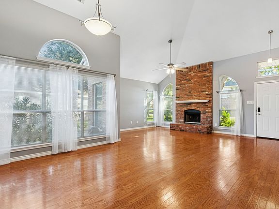 Beautiful Home Backing to a Greenbelt in Desirable Flower Mound! Step inside to an inviting living area with soaring ceilings, hardwood floors, and walls of windows that fill the space with natural light. A floor-to-ceiling brick fireplace anchors the room, creating a warm and welcoming focal point. The flexible floor plan offers both a formal dining area and a casual eat-in kitchen, perfect for entertaining or everyday living. The kitchen opens to the living area and features granite countertops, stainless-steel appliances, and ample cabinet space. The downstairs primary suite is a peaceful retreat with large windows overlooking the serene backyard, a tray ceiling, and a spa-like ensuite with dual sinks, granite counters, a garden tub, walk-in shower, and generous walk-in closet. Upstairs offers a spacious game room overlooking the first floor, three additional bedrooms, and a full bath with dual sinks and granite counters. Step outside to your private backyard oasis with endless possibilities and direct access to the extensive scenic trail system right behind the home. Recent updates include HVAC and windows. Ideally located near top-rated schools, beautiful parks and trails, shopping, dining, and DFW Airport, this home offers the best of Flower Mound living. Don’t miss your chance to make it yours!