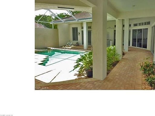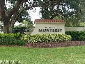 A rare opportunity: one of only two courtyard homes in the highly desirable Villages of Monterey. This well designed home has an updated kitchen with stainless steel appliances, granite counter-tops and a spacious pantry. The main residence upgrades include plantation shutters, walk-in closets with custom built-in cabinets, vaulted ceilings, a fireplace, and wheel chair access. The tile roof and air-conditioner were replaced in 2011. In 2015 the entire home was freshly painted inside and out. The home boasts a 510 square foot separate pool-side guest house with a living room, bath, kitchenette, bedroom, and vaulted ceilings. There is a lighted wet bar in the screened lanai overlooking the aqua link controlled pool and spa system. Villages of Monterey is surrounded by an A-rated school district from elementary through high school, and its central location in North Naples is only minutes to the beach, shopping, and upscale restaurants. This home was built for entertaining and is in ready-to-move-in condition.