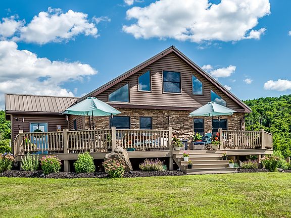 Spectacular views of the Susquehanna River! Awesome home on 22.58 ac with stocked pond. Vaulted ceilings, stone fireplace and loft embrace the appeal of the living and dining room. Kitchen with breakfast bar blends into the main living area. This 3-5 bedrm home awaits your arriva!! Perfect location for those who enjoy fishing, kayaking, canoeing, boating, hunting, mountain biking, hiking.