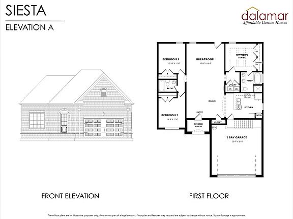 Nestled in the heart of central Kentucky, Lawrenceburg is a charming city in Anderson County that combines small-town appeal with convenient access to the region's amenities. With the rural beauty of the Bluegrass region surrounding you and the ease of commuting to larger hubs, this is a locale where you can enjoy the best of both worlds: peaceful neighborhood streets and a vibrant local community. In this setting, a new-construction home offers not only fresh design and craftsmanship but also a lifestyle built for the years ahead. The Builder • Dalamar Homes Dalamar Homes stands out for providing a custom-home experience that doesn't carry extreme cost premiums. Their process is streamlined for buyers seeking to personalize their home while still benefiting from a fixed-price build and dedicated project manager. From the initial structural meeting through plan drafting and selection of finishes, Dalamar invites homeowners to shape the details of their new home — making the house truly yours. You'll find peace of mind in their project-management structure and in the quality-driven approach. The Siesta Plan - Elevation A Introducing the Siesta Plan (Elevation A) — a thoughtfully designed layout by Dalamar Homes. While specifics may vary depending on your selected options or upgrades, the standard Siesta floor plan from Dalamar is a single-level home featuring 3 bedrooms and 2 full baths, ideal for many lifestyles. For this listing in Lawrenceburg, Elevation A may include enhanced curb appeal (front elevation detailing), an attached two-car garage, open-concept living space, and a balance between functional everyday areas and the opportunity for design upgrades. Imagine entering through a welcoming front façade, with generous windows bringing in natural light, flowing into a great room, then into a kitchen/dining hub that invites both daily living and entertaining. A dedicated primary suite offers privacy, while the additional bedrooms share convenient access to full-bath and secondary spaces. Because Dalamar's process is customizable, this Siesta layout allows you to pick your finishes, flooring, cabinetry and perhaps even structural enhancements — truly making it your home. Why this home stands out Brand-new construction — no need to worry about deferred maintenance or hidden surprises. Built by a trusted home builder with a transparent, structured process (Dalamar Homes). Located in Lawrenceburg, meaning excellent regional access, excellent community feel, and appealing setting for resale or long-term comfort. The Siesta Plan Elevation A offers smart design, comfortable scale and flexibility for personalization.