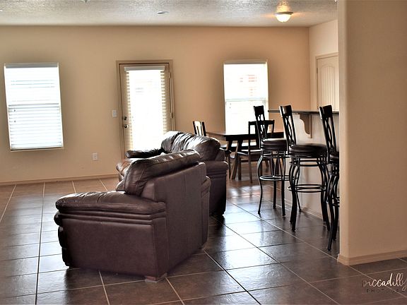 MOVING, MUST SALE - 2097 sq ft energy efficient home for sale built in 2013 in Ranchview Estates, 3 bedrooms, 2 full baths, office with double doors, formal dining area, kitchen dining area, beautiful kitchen with stainless steel GE profile appliances has 2 pantries, open concept family living area, utility room, 18" tile throughout except for carpeted bedrooms, 9 ft ceilings, recess lighting throughout, beautiful solid surface counter tops in kitchen and baths, slate in and around bathroom tubs and showers, isolated master suite with double doors and large walk in closet, 3 car insulated garage, 10 × 10 cinder block storage building with lighting and electrical, 6 ft cinder block fence, sprinkler and drip system in front and backyard. Please contact us at 575-318-5665 or deenajpalmer@gmail.com to schedule a showing.