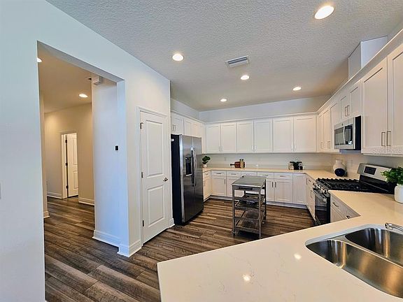 Under Construction. NEW CONSTRUCTION VILLA in Clearwater, FL. 3/2/2 Single-story Villa with Luxury Vinyl Plank Flooring throughout. Gorgeous white, modern, soft-close cabinetry with quartz countertops in kitchen and both bathrooms. Stainless Steel GE appliances, including a gas range. TWO walk-in closets in primary bedroom along with 2 vanities, undermount sinks, frameless glass shower door, and tile all the way to the ceiling in the spacious primary bath. Open floorplan with high ceilings and 8' sliding doors in Family Room. Security system included. This home is on schedule to be completed in December 2025. A 2-10 Home Warranty is included.
