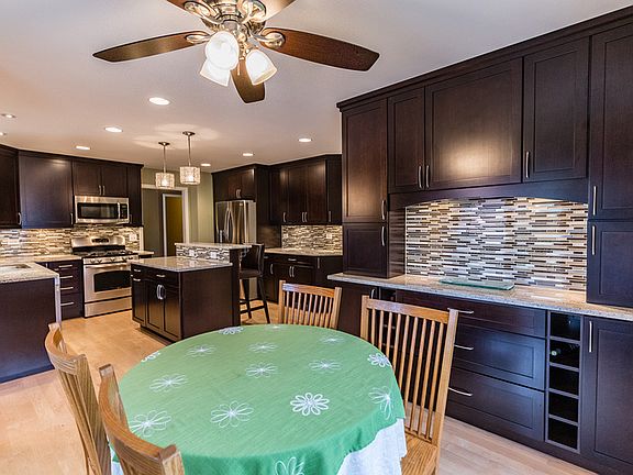 Beautiful ranch home in Valley Creek Sub. 3 Bed/2 BA on Main Floor, fireplace, stunning kitchen w/ Cherry KraftMaid soft close cabinets w/ European style hinges, granite counter tops, SS appliances, eating area, separate dining, main floor laundry, full finished basement w/ 2 bedrooms, full Bath, FR w/ wet bar, storage and wine cellar. Professionally landscaped yard w/ stone patio and fire pit. Agent Owned!