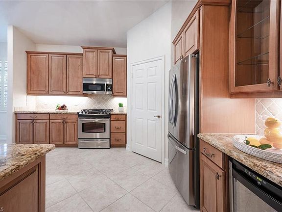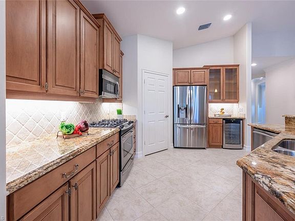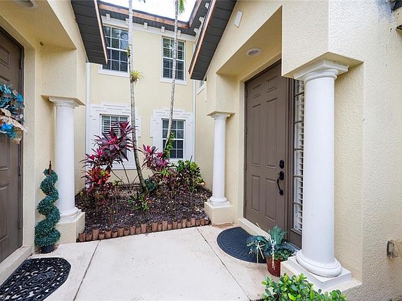 This Bimini Bay Coach Home is in Impeccable Condition and Move-In Ready with Fresh Interior Paint and includes New Carpet in the bedrooms. This home offers many upgrades and boasts the largest floor plan in Tarpon Bay with 3 bedrooms, a Den, 2 full bathrooms, a wraparound Lanai and a 2-car garage. This unit has an abundance of upgrades such as Plantation Shutters in all windows and sliders, tile in main living areas, wood floor in the Foyer, built-ins in every closet including linen closets and pantry, designer lights and fans, crown moldings, glass shower doors and more! The floor plan is open, bright and cheerful. The kitchen has a breakfast bar and nook area, upscale granite counter tops, tiled backsplash, reverse osmosis water filter, bar area with glass door cabinets and wine cellar refrigerator, walk in pantry with built-in shelves and drawers, newer stainless-steel appliances including a sleek natural gas oven. The spacious wrap-around Lanai has glass sliding doors which helps keep the lanai dry and clean during the rainy season and makes this room enjoyable year-round while offering plenty of room to set up a living and dining area with a custom-made rug for the lanai over ceramic tile. This is a room where you will enjoy looking at peaceful views of a natural tropical preserve in company of friends and family! The garage includes epoxy flooring plus a tankless hot water heater. Also, a NEW Roof & Exterior Paint are in Process and are to be completed soon making this condominium like New! Tarpon Bay is conveniently located in coveted North Naples, you'll find yourself just minutes away from exquisite dining, shopping, and pristine white sandy beaches. Whether you're looking for a leisurely day by the water or an evening out on the town, everything you need is within easy reach. Tarpon Bay is a resort-style amenities rich community! Dive into the sparkling Infinity Edge Pool or unwind in the rejuvenating spa. Stay active with access to a fitness center, his and hers locker rooms, and a yoga fitness studio. Challenge friends to a friendly match on the Pickleball or tennis courts or enjoy a casual game of basketball. The clubhouse offers a sophisticated club room offering a great room, billiards and a card room with a banquet style kitchen and poolside gas grills and cabana, perfect for hosting gatherings and creating lasting memories.