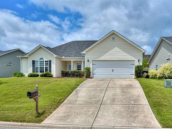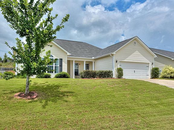 Adorable move-in ready home! Walk right into this spacious open floor plan that is perfect for entertaining. Living area equipped with beautiful electric fireplace, vaulted ceilings and gorgeous hardwood flooring. Eat-in kitchen with walk-in pantry, upgraded lighting, bar space and custom built-in dinette seating. Refrigerator, stove, dishwasher & microwave to stay with home. Formal dining/office space located just off living area. 4 bedroom/2bathroom home features a split floor plan. Primary bedroom boasts 9 ft tray ceilings, view of the backyard and generous sized en-suite bathroom with walk in closet, garden tub and separate shower. 3 Secondary bedrooms on opposite side of the house. Secondary bedrooms painted and upgraded lighting installed. Large flat lot with recently upgraded patio area. Home is located in 100% USDA financing eligible area.