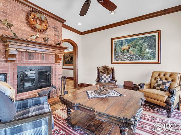 Refined Country Living near Berthoud, Colorado. Welcome to a rare equestrian paradise where luxury and wide-open freedom unite. Spanning 75 acres of pristine countryside, this extraordinary ranch estate is designed for both world-class horse enthusiasts and lovers of refined rural living. A tree-lined driveway leads you to the heart of the property; a stately colonial residence, blending rustic elegance with modern comfort. Soaring ceilings, reclaimed wood floors, walls of glass framing panoramic views and hand-selected natural materials and custom finishes create a warm, elevated aesthetic in this multi storied home. Multiple fireplaces, a chef's kitchen, and spacious entertaining areas invite gatherings both intimate and grand. Where evenings begin and stories unfold - the custom-built bar is a showpiece of Western elegance, wrapped in rich detailed wood carvings and just steps away, a wine room cradles your private collection. Each of the home's three spacious bedrooms is a retreat, showcasing warm wood tones, serene views of the surrounding landscape and handcrafted details in each of the private bathrooms. Thoughtful design and luxury converge to create restful spaces that feel both timeless and inviting. For the equestrian, the ranch features a fully equipped state-of-the-art barn with oversized stalls, tack rooms, grooming stations, an apartment/guest cottage perfect for a ranch hand or an ADU, and a professional-grade riding arena. With the Rocky Mountains just a few miles away, the possibilities for riding and exploration are endless Additional highlights include an indoor pool, seven outbuildings, private pond, pivot sprinkler, Handy Ditch water rights valued at $1,080,000, expansive outdoor living spaces, and meticulously landscaped gardens. With its unobstructed mountain views, the spaciousness and serenity of the property, this estate is the Yellowstone Ranch of Colorado.