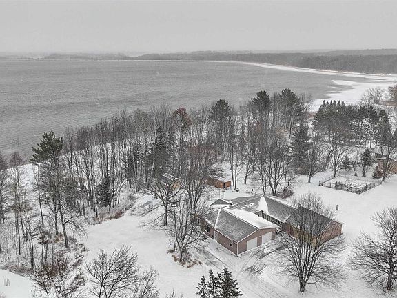 Looking for an affordable waterfront retreat with pristine sand frontage on the Big Eau Pleine? Your search ends here. This welcoming property offers everything buyers hope to find in a waterfront home?an unbeatable location, mature trees, gentle terrain leading to a sandy shoreline, your own private dock, and a warm, inviting home filled with updates, generous living spaces and the opportunity to complete area's to make it your own!,Arriving at the side entrance, you?ll step onto an updated deck with maintenance-free railings before entering a bright and spacious drop area. Sunlight pours in from windows on two sides, and thoughtful cabinetry uppers and lowers?complete with a convenient sink?creates the perfect transition space for everyday living. Just off this area is the expansive primary ensuite, framed for future French doors if desired. This room is impressively sized, easily accommodating any bedroom layout, and the adjoining remodeled bath feels like a private spa with its custom tile shower, oversized soaking tub, and walk-in closet. From the primary suite, the home flows into the living room, where a wall of windows frames peaceful water views and a door leads directly to one of the outdoor deck spaces. A pellet stove with stone surround anchors the room, offering both charm and warmth throughout the cooler months. A short hallway connects to a conveniently located guest bath?perfectly placed just inside the entrance to the oversized two-stall garage?and the utility room sits directly across for easy access. Bedroom #2 is also located off the living room, making it ideal for guests or family. The sizeable addition to the home expands the living space beautifully, beginning with a cozy sitting room and continuing down a few steps to an open-concept kitchen, dining, and family room. This is truly the heart of the home?a warm, welcoming space with another pellet stove, plenty of room for gatherings, and a door that leads to the large back deck overlooking the yard and lake. The kitchen has oak cabinetry, newer stainless-steel appliances including a double oven, HD Formica countertops, a butcher-block work surface, a pantry, and abundant storage. Off the family room, you?ll find the generously sized third bedroom featuring an electric fireplace for added ambiance, along with a second full bath equipped with a Bluetooth-enabled jetted shower offering LED lighting. The laundry room, complete with attic access for exceptional storage, also connects directly to the second two-stall garage?perfect for hobbies, equipment, or additional vehicles. Outdoors, the property becomes truly enchanting. The spacious backyard is graced with mature trees that provide shade and beauty, a fenced raised garden bed ready for your seasonal harvest, and tiered retaining walls designed for colorful perennials. Two outbuildings offer excellent utility?one currently used for wood storage and the other ideal for lawn equipment or a small workshop, complete with power, a subpanel, and upper storage. The sandy beachfront is simply outstanding, offering a rare stretch of easy-access shoreline and your own rolling dock, setting the stage for endless days of boating, swimming, fishing, or just soaking in the tranquility of lakeside living. This remarkable property also includes updates and extras such a