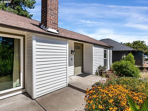 Welcome to this beautifully designed single level home offering 1,998 square feet of comfortable living space, featuring 4 bedrooms and 3 full baths. Step into the sunken living room where a cozy fireplace and floor to ceiling bookshelves create your very own in home library. The open kitchen boasts a built-in 5 burner gas range, newer refrigerator, an eating bar, pantry and wood laminate flooring. The large dining area flows seamlessly into the inviting family room, highlighted by a high ceiling with exposed wood beam and a sliding door leading to the covered back patio - perfect for outdoor entertaining. Convenience abounds with a separate laundry room, central air conditioning and all appliances are included. Outdoors you will find a thriving collection of blueberries, Adriatic figs, Elberta peaches, Rainier cherries, Mt. Hood raspberries and grapes, offering a bounty of sweet treats throughout the seasons. Perfect for those who appreciate a sustainable and healthy lifestyle. Intermixed in the garden are a firework show of perennial flowers and herbs to enjoy throughout most of the year. Exposed beams throughout multiple rooms in the home as well as wood laminate flooring in the entry, hall, eating areas and kitchen. The neighborhood pool and park add to the enjoyment of the area.