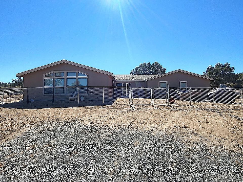 40 Miles from Kingman AZ just off I40 exit 91, 2hrs from Las Vegas/Lake Mead, 2hrs from Flagstaff /Snowbowl and 3hrs from Phoenix is a beautiful ready to go turn key fenced 40acres! Up in the mountains of Northern Arizona is a 3400sqft home complete with access to over 10000 acres of state land for hiking, horseback riding, mountain biking and hunting. Enjoy 4 seasons and all amenities provided, such as 2 seperate power poles, 2 seperate 2500gal water tanks on automated float system fed by artesian well. 250 gal propane tank that powers an emergency Generac generator for the home. A 2018 KIoti DK55 backhoe and front loader 4 wheel drive tractor, which also comes with a yanmar auger, box grader, disc harrow and forks. A 2013 Kubota RTV 900xt with hydraulic dump bed as well as an 800lb manual crank crane and tools in a 20x20 shop with 2, 20ft containers on either side. There is also a freezer and elec to shop. 3 horse corrals, sheep/ram pen, goat pen, cow pasture, feed pen, pig pen chicken pen with house. All come with covers/shelters and waterers. Water is run to all except pig pen. There is also a custom longhorn chute to run cattle. 15x13 tack barn with loft. 21x12 hay storage cover. Tractor cover and storage shed on property. Pump for house is in its own 10x10. So now lets see what the home has to offer! Built by Pacesetter Homes and Mohave Rancho Lumber is a well insulated, stout construction home. The ground was dug out and home set into ground with concrete runners running the length and width of home giving sound support and anchorage. Block skirting was then constructed around base of home and backfilled. The roof is a 30yr roof. House is chainlink fenced for dogs with multiple access points. A large 5 bedroom septic is installed. Home is wheelchair accessable, inside and out. 2015 Frigidaire dishwasher, GE double oven with 4 burner/griddle gas stove. GE microwave with vent fan.Frigidaire Electrolux Gallery stand alone frig and stand alone freezer. 2 drop freezers, 1 maytag 15cu ft and kenmore 17cu ft. Stand alone deep freeze Frigidaire. High capacity top load Maytag Bravos XL washer and front load Bravos dryer. 2, 4 ton heating and cooling units that are independantly controlled, one unit for each side of home. Samsung 4k flatscreen with stand unit. Wrap around sofa. Ceiling fan with lights. Upon sale a complete book of home information is provided. All papers on home are clean and clear. Home is affixed to land.