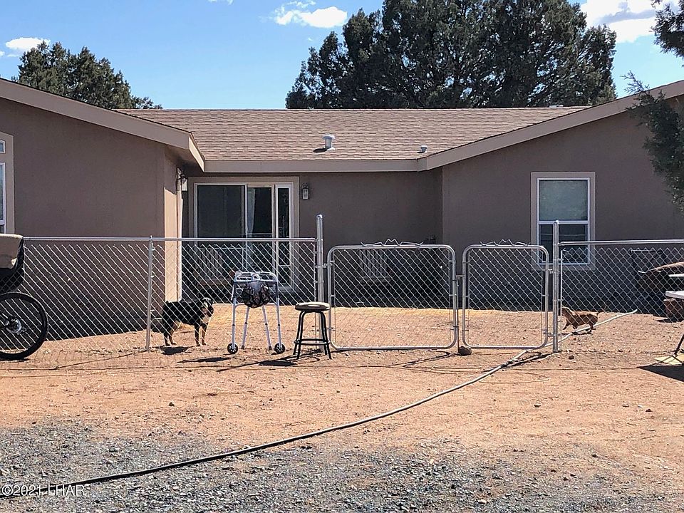This self sustainable homestead is a beautiful as it is functional. With more than 3333sq feet of beautiful comfortable livable space under roof and miles of perimeter and cross fence and more than 6 different animal pens and enclosures and lots of room for gardens and green houses, this place is ready for hunkering down and living a comfortable quiet life! 4 bedroom, 4 bathroom, Great Room, Family room open kitchen, huge pantry and separate storage room, hard flooring throughout. Less than 3 miles of sand and gravel dead end road, REAL power, good well and plenty of water storage. Dog fence near the house, two large fenced pastures several smaller fenced pens, a nice large tack room near the biggest pasture, a couple additional storage sheds spread throughout the animals pens. Power to everything, water in all the right places. All this and the property is breath-takingly gorgeous on top of functional. Striking beauty in very direction, peace and quiet and dark skies. This property is a luxurious retreat from the outside world. Located 45minutes East of Kingman off of I-40 and the Fort Rock exit the access is easy from Kingman or Seligman.