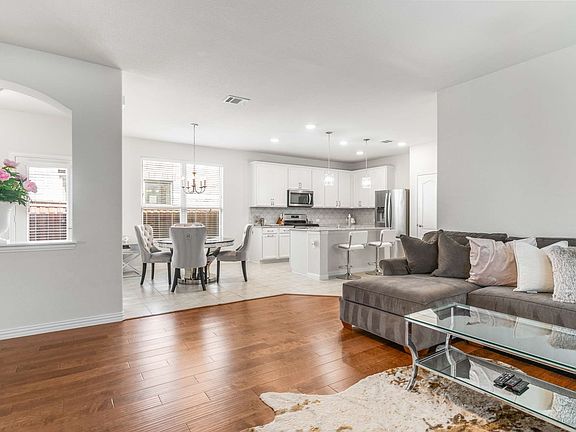 Step inside 2037 Barx Dr — where modern design meets effortless living. Built in 2018, this beautifully maintained single-story home offers 3 spacious bedrooms, 2 bathrooms, and an open-concept layout perfect for entertaining or relaxing in comfort. Elegant engineered hardwood floors flow throughout—no carpet anywhere—creating a seamless blend of warmth and durability. The chef-inspired kitchen features granite countertops, a large island, and stainless steel appliances, opening to the inviting living area anchored by a stone fireplace. A dedicated workspace provides the perfect setup for remote work or creative pursuits. The primary suite includes a walk-in closet and spa-like bath, while recent updates such as a new roof (2024) and extended backyard patio with semi-turf (2024) add value and peace of mind. Enjoy outdoor living in your private, low-maintenance backyard, or take advantage of the community’s resort-style amenities—including two pools, fitness center, walking trails, playground, basketball and volleyball courts, tennis courts, and dog park. Located just off 423 and Rockhill, this home is minutes from the upcoming Fields West Development, PGA Headquarters, H-E-B, and Universal Studios. The home offers the total package including modern upgrades, a prime location, and resort-style community living in one of Little Elm’s most desirable neighborhoods.