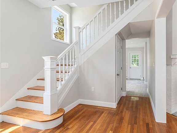 Introducing 2037 Cranston Street- Nestled on a corner lot in the Meshanticut neighborhood of Western Cranston, this 4 bed, 2 bath, American Foursquare Colonial has been beautifully restored. The stately exterior has been revitalized in a stunning Needle Point Navy Blue with white trim. Entering from the meticulously refinished front porch, an ornate stained-glass window, believed to be original, warmly greets you at the front door. Step inside the entryway and the Colonial Revival staircase, highlighted by glistening white oak floors, will take your breath away. The open-concept first floor, drenched in natural light, boasts nine-foot ceilings, a large living area with original fireplace and transom window, a sizable dining area, full bath, and a stunning kitchen with Linden Point Grigio Spanish tile flooring, white Shaker cabinets and Stainless-Steel appliances- all complimented by River Blue Brazilian granite countertops. On the second floor, original red oak hardwood floors carry throughout 4 large bedrooms with ample closet space. Finishing off the second floor is a tastefully done full bath, accented with porcelain subway tiles. Walk-up attic provides plenty of storage space and could easily be finished if desired. Moments away from Meshanticut Park, Garden City and so much more! Call today to schedule your private showing!