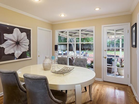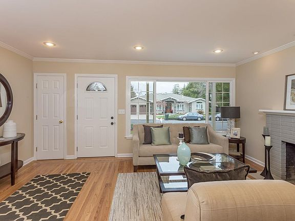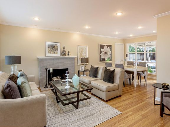 Updated, light-filled ranch home with Cupertino schools! Charming curb appeal with fresh exterior paint, manicured lawn and welcoming front porch. Inviting living room with broad front-facing window, gleaming hardwood floors, crisp crown moldings, wood-burning fireplace and convenient coat closet. Formal dining area with rear-facing window, French door to the rear yard and patio, and hardwood floors. Updated kitchen with room for casual dining, white tile counters, natural wood cabinetry and tile floors. Master bedroom with front- and side-facing windows, hardwood floors, and wardrobe closet. Two-additional bedrooms with hardwood floors, crown moldings and wardrobe closet. Attached 2-car garage with workbench and laundry area. Large, fully fenced rear yard with paved patio, level lawn, mature tree and perimeter landscaping. Great South Los Altos location close to shopping and less than one mile to commute routes.