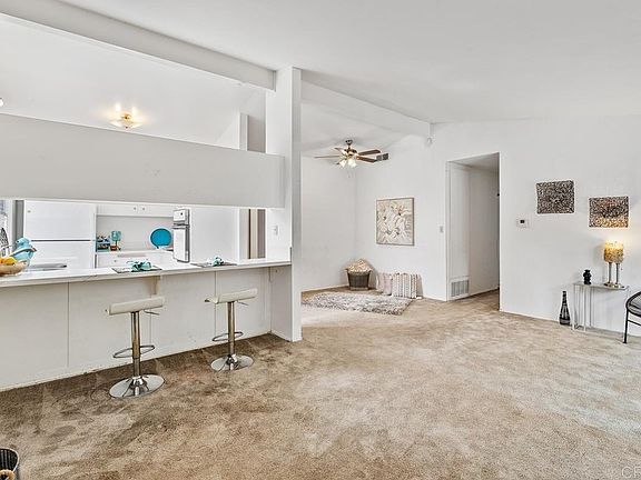 Single story house in Serra Mesa close to freeways, hospitals and shopping. Enter through the courtyard into an open beamed ceiling, light and bright living room. Fourteen foot high ceilings in the dining and family room area with a wood burning fireplace. Master bedroom is en suite with an abundance of natural light. Large yard for entertaining with a deck, shade tree and fruit tree. Laundry hook ups in the two car garage. Bring your ideas to make it your own! 2022-02-22