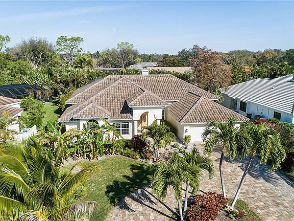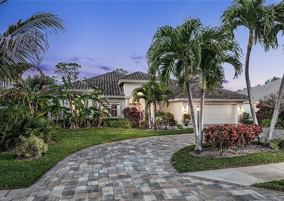 Sprawling Monterey home on lovely private lot on cul-de-sac street offers fabulous space and floorplan. This 4 plus den, 3 1/2 bath home comes complete with new paved circular drive, newer porcelain tile floors through much of living space and charming wood floors in fireplaced family room and kitchen. Newer roof 2021, newer mechanicals and large open rooms make this move-in ready. 142foot flat ceilings, open and inviting, and sprawling space is complemented by massive pavered pool deck on private and green backyard setting. Kitchen is large, updated and open and loaded with great detail, including newer appliances, granite counters, 42” raised panel white wood cabinetry, double oven and more. Monterey is an active, highly sought-after community located less than 3 miles to the beach, Mercato and Waterside. Amenities include a 24-hour guarded gatehouse, renovated clubhouse, newer fitness center, billiards, heated lap pool, basketball and pickleball court, new play area, active tennis with pro, 3 lighted Har-Tru tennis courts. A-rated public schools and three excellent private schools within 3 miles.