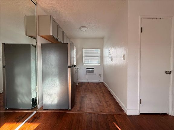 Cozy and bright studio apartment located in the heart of Hollywood, FL! Featuring gleaming hardwood floors and a functional layout, this unit offers a separate kitchen with modern cabinetry, full-size refrigerator, and ample storage space. The living area boasts natural light through large windows with charming views. The retro-inspired bathroom is well-maintained with colorful tile accents. Additional highlights include built-in air conditioning and a mirrored wall for an open feel. Conveniently located near shopping, dining, and entertainment, this apartment is perfect for urban living. Pets welcome, no aggressive breeds. See supplements for rental application.