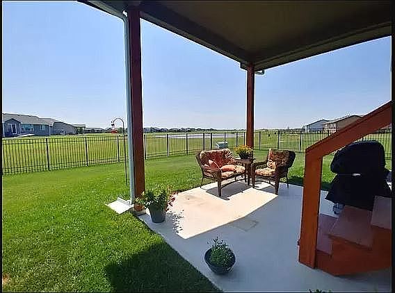 Don Klausmeyer Construction transferable 10-year James Hardie certified model home with all the upgrades. Outside you'll find a covered porch and patio, well manicured fenced yard with a lake view, professional landscaping and 50mph wind rated shaker shingles. Inside you'll find 10ft. ceilings, 5.5" trim, crown molding, 3-bedrooms and 2-full bathrooms. There are ceiling fans in every room and the kitchen has quarts counter tops, white cabinets with handles, walk in pantry with spice rack, coffee bar and stainless steel appliances with a double door refrigerator that stays with the property. The master bedroom has a walk in closet and the master bathroom has double sinks, jetted large tub and separate shower. The basement is framed for 2-bedrooms with closets, electrical and a rough in for a bathroom with egress to the outside.