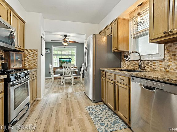 Now $250,000! Welcome to 2037 Saint Clair River Dr in Algonac... a beautifully updated home that blends modern updates with outstanding indoor/outdoor living. With zero down financing available, today’s lower interest rates, and immediate occupancy, now is the perfect time to move in before the weather changes! Step inside to find new luxury vinyl plank flooring throughout the main level, a spacious living room with a shiplap accent wall and abundant natural light, and a dining space that flows seamlessly into the renovated kitchen with granite countertops, custom backsplash, and plenty of storage. The main level also features two bedrooms with hardwood floors and built-in storage plus a fully updated bathroom with ceramic tile, granite vanity, and a tiled shower/bath combo. Upstairs, the large third bedroom with open-style bath offers a private suite feel. The basement provides plenty of storage, but the real highlight is outside: a fenced backyard with patio and fire pit area, perfect for entertaining. The oversized detached garage is designed with a rear garage door that opens directly to the backyard patio, creating effortless flow between indoor and outdoor spaces... ideal for gatherings, hobbies, or simply enjoying summer nights. Additional perks include no flood zone (no flood insurance required) and access to Algonac’s brand-new resident-only swimming pool. All just steps from the St. Clair River and minutes from downtown shops, dining, and marinas. This one checks every box: updates, space, location, and unbeatable value at $250,000!