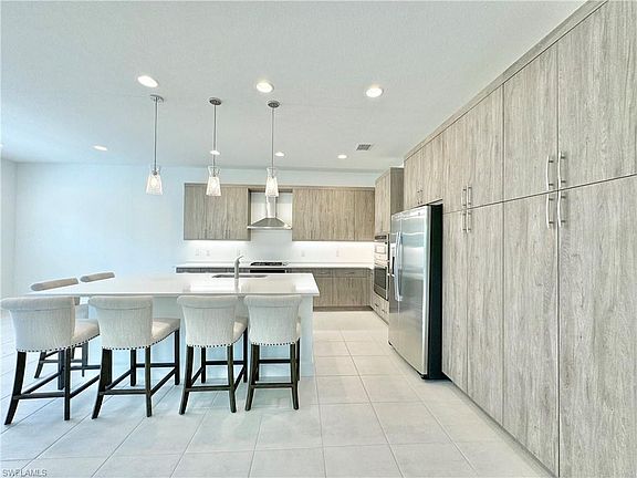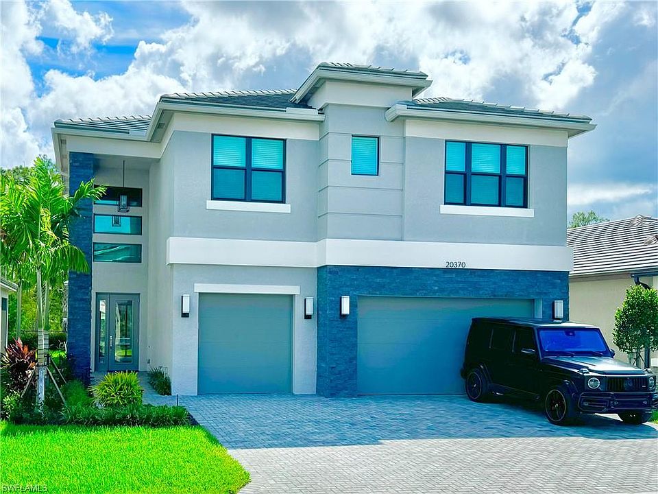 An exceptional, newly built, unfurnished, two story, open floor plan concept with 3 car garage rental home in the luxurious RIVERCREEK community, built by GL HOMES. The home greets you with an extremely high ceilings and grand entrance. Gourmet kitchen is equipped with the state of the art appliances that includes a beautiful range hood, impressive matching chandeliers in the dining area and over the large island with quartz countertop. Walk-in butlers pantry with a ton of storage space. A beautifully done mud room area finished with cabinetry for your coats, shoes. Large size master bedroom with recess lighting and a coffered ceiling, that gracefully adds elegance. Thoughtfully designed "His" and "Her" walk-in closets with tons of storage space. Besides master bedroom, there are four more large additional bedrooms (including one at the lower level). Huge loft area also overlooking the lake at the back that can be a perfect & comfy media room for those cozy late night movies. Upstairs laundry room with matching cabinets and stainless steel sink along with washer and dryer. Frameless glass doors along with hand showers in the bathrooms. Entire lower level fitted with beautiful designer decorated high end tile floors that look like engineered wood. Three car garage. This stunning newly built home is located in very close proximity to all key destinations: shopping (minutes from Miramar outlet), dining, entertainment, supermarkets, beaches, hospitals, international airport, minutes from Florida Gulf Coast University, and much more. 5 star World Class clubhouse is offers endless amenities, such as pickleball, basketball, tennis, fitness center, swimming pool, playground and much more.