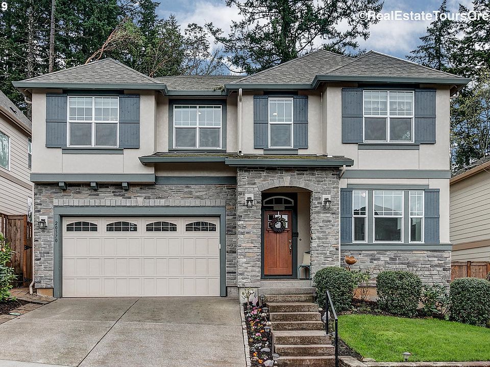 Beautiful (like new) home in sought after neighborhood. Gourmet kitchen w/ large granite island, stainless appliances coupled with open floorplan, perfect for entertaining. Engineered hardwood floors on the main floor and most of upstairs. Luxurious master has his & her walk-in closets plus soaker tub & shower. 4 bdrms + den+ large bonus rm upstairs. Awesome backyard is fenced/back to permanent green space. Extremely private & quiet.