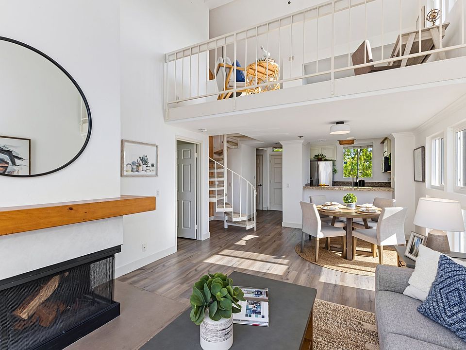 ** Available for rent Oct 15th or Nov 1st ** Conveniently located in the heart of Huntington Beach, this rarely available top-floor, END-UNIT penthouse in the sought-after Seabridge Villas community offers a resort-style coastal retreat unlike any other. With 1 spacious bedroom, plus a versatile loft, and 1.25 beautifully upgraded baths, this light-filled 890 sq ft home combines luxury, comfort, and function in a truly idyllic setting just over a mile from the beach. Soaring vaulted ceilings, skylights, and large windows welcome both ocean breezes and golden sunsets, while the open-concept living and dining areas, adorned with a cozy wood-burning fireplace, provide the perfect space to relax or entertain. Take the spiral staircase up to the loft perfect flex space for a home office, guest room, nursery, workout area, game room, and perhaps a potential second bedroom. The kitchen features granite-tile countertops, updated stainless steel appliances (oven, fridge and dishwasher) and stylish fixtures ideal for everyday living. The main bath boasts a newly remodeled walk-in shower with a sliding glass door enclosure, and the 1/4 bath adds an extra vanity area that seamlessly connects to the generously sized master suite. This unit features in-suite laundry. Enclosed storage space is available on the balcony and secure bike storage is available on the main floor. When you feel like basking in the cool ocean breezes, step outside onto your private balcony and enjoy lush tree-lined views. Additional features include in-unit laundry, large closets, ample storage, assigned parking. The HOA covers water and trash, you will cover electricity. Residents receive 24-hour guard-gated security, parking patrol, elevator access to all floors, and unparalleled amenities including multiple pools and spas, a well-equipped fitness center with sauna, 4 lighted tennis courts, a reservable clubhouse with full kitchen, a media room, greenbelts, parks, and tranquil walking paths lined with streams and waterfalls. Minutes from Downtown Huntington, Pacific City's premier dining and retail, the iconic pier, and with easy access to Newport Beach, Costa Mesa, and PCH, this home offers the ultimate blend of beach-town charm and upscale living. With optional lease terms available this penthouse condo delivers the coastal California lifestyle at its finest. Don't miss your chance to call this rare gem your own!