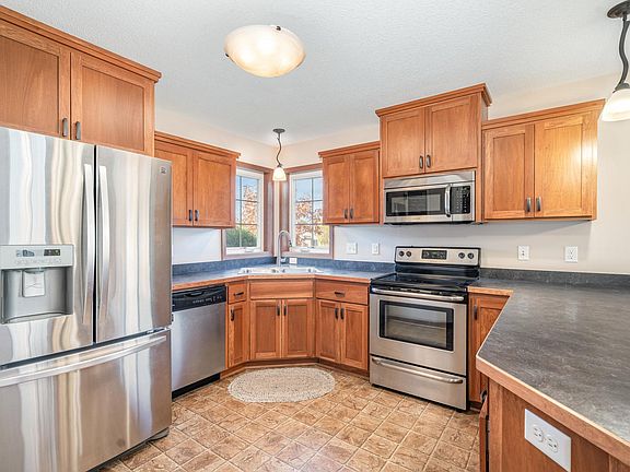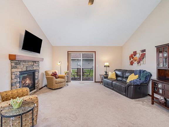 Here it is! Easy living on one level AND an oversized 2 car garage! This charming, detached townhome sits on a corner lot and offers comfort, convenience, and space. Enjoy an open layout with vaulted ceilings, a cozy gas fireplace, and a maintenance-free deck. This well-maintained home features 2 bedrooms and 2 bathrooms, including ADA-accessible doors and showers. The spacious kitchen offers abundant cabinets, countertops, and a pantry. Primary bedroom includes a walk-in closet. New roof in 2018. Lightly lived in — seller is a snowbird, so appliances have seen minimal use. Convenient location near the library, YMCA, shopping, churches, and with an easy commute to the Twin Cities. Detached townhomes in this neighborhood rarely become available—schedule your showing today!