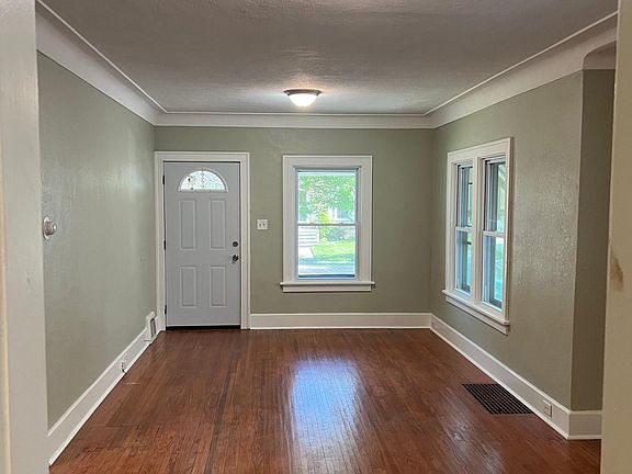 Freshly painted home with wood stained living and dining room floors. Carpet in bedrooms and vinyl plank floors in kitchen and bathroom. All new windows and a updated bathroom plus updated lighting fixtures throughout the house. Tenant responsible for all utilities including water, no smoking no pets unless service dog.